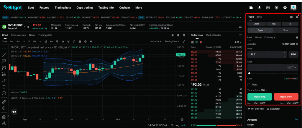 - From the Bitget homepage, look for the “Trade” or “Futures” section. For stock CFDs, you’ll typically find them under “USDT-M Futures” or “Spot Margin” depending on the specific product name. (Bitget updates often; look for “Tokenized Stocks” or “CFDs”).