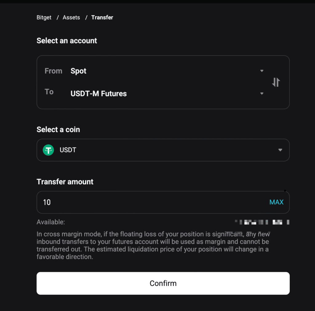 Now it’s time to fuel your trading. You’ll deposit USDT into your Bitget account. This USDT will serve as your margin for stock CFD trades.